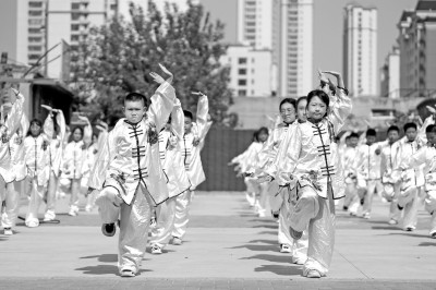 Students from Shaolin Tagou Martial Arts School in Songshan, Henan Province are attending classes. Xinhua news agency